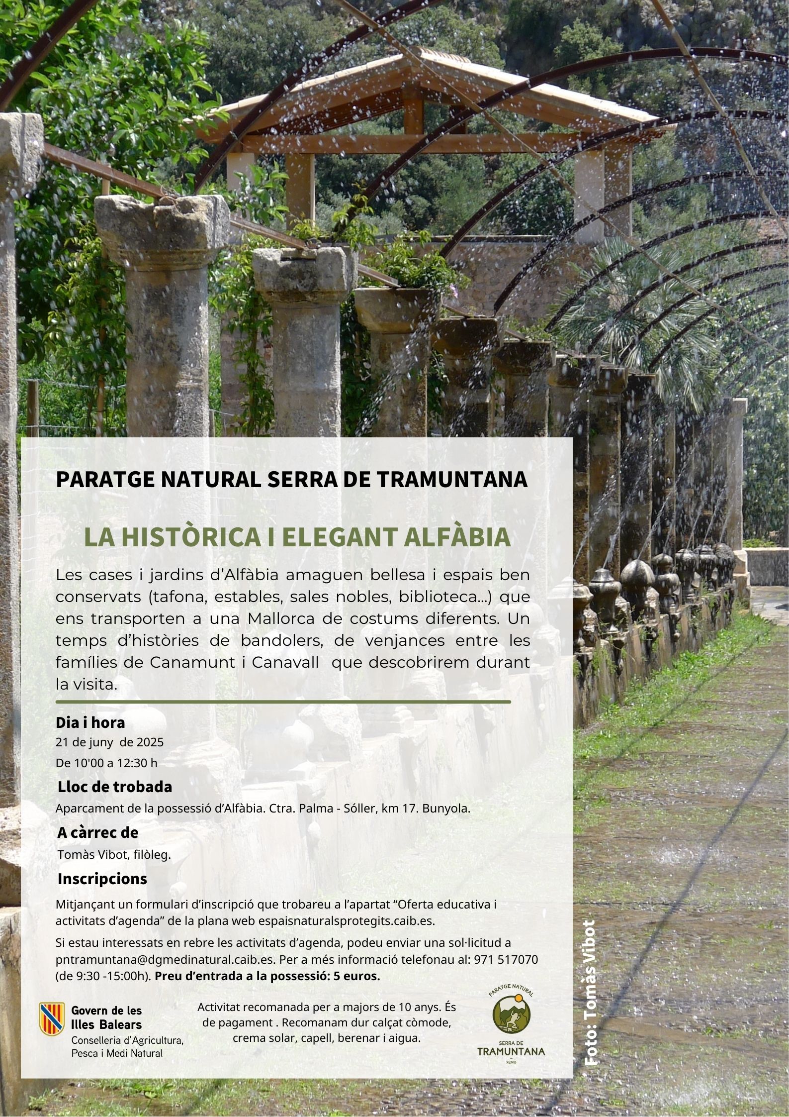AVISO IMPORTANTE: Recordad que una vez hecha la inscripción, es necesario esperar un correu de confirmación, que os indicará si habéis obtenido plaza para la actividad. Si tenéis alguna duda podéis contactar por correo electrónico a infomadorestramuntana@gmail.com o llamar a Ca s'Amitger (centro de información e interpretación del Parage Natural al 971 51 70 70 en horario de 9:30 a 15:30).