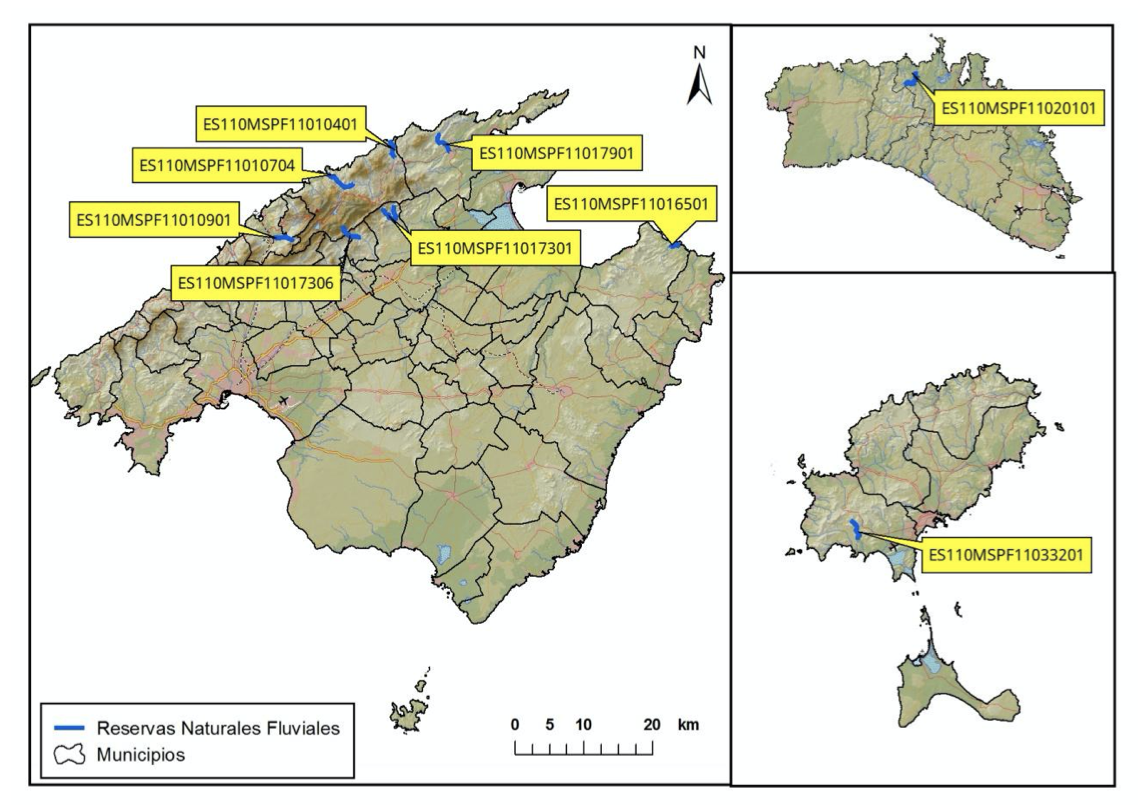 La ubicación de las reservas naturales fluviales de las Islas Baleares se muestra en el mapa siguiente: