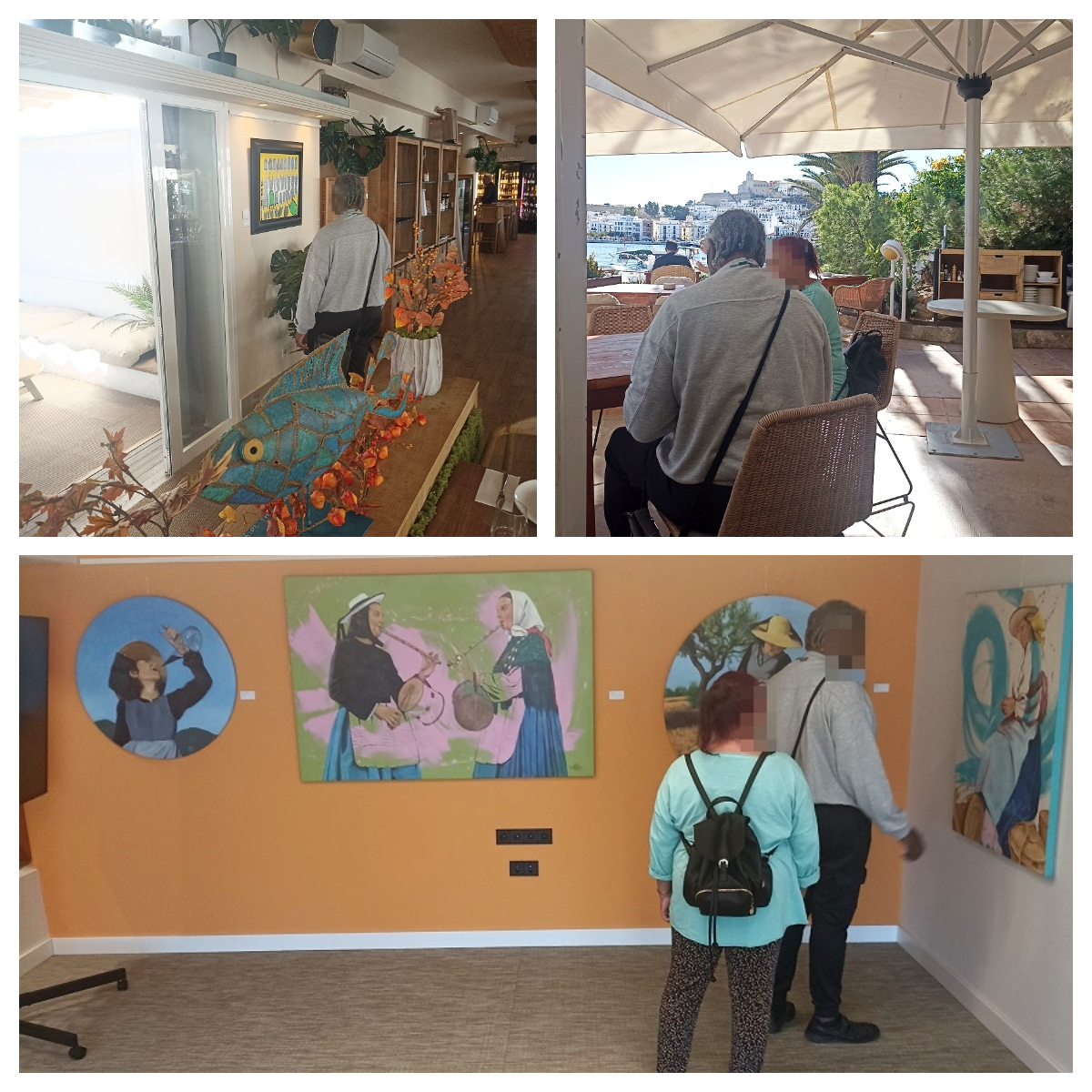 Aprofitant que després de la tempestat ve la calma i surt un esplèndid sol, ens acostem al port a veure l'exposició “Emperò” d'Aida Miró a la Fundació Baleria; d'aquí saltem al Club Nàutic on veiem l'exposició “Is a genre-defying” de Víctor Spinelli i, ja que passàvem pel lloc que hi ha una terrassa assolellada, amb vistes meravelloses al port i Dalt Vila, fem una escala tècnica abans d'estirar les cames i tornar-nos cap al Pis.
