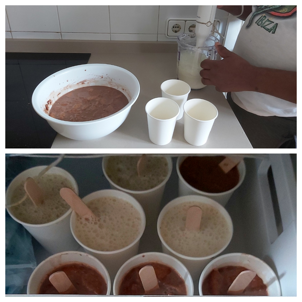 Ahir dia 14 d’agost aprofitam l’onada de calor que feia per fer els nostres propis gelats de diferents sabors: xocolata amb galeta, kiwi, plàtan, etc.