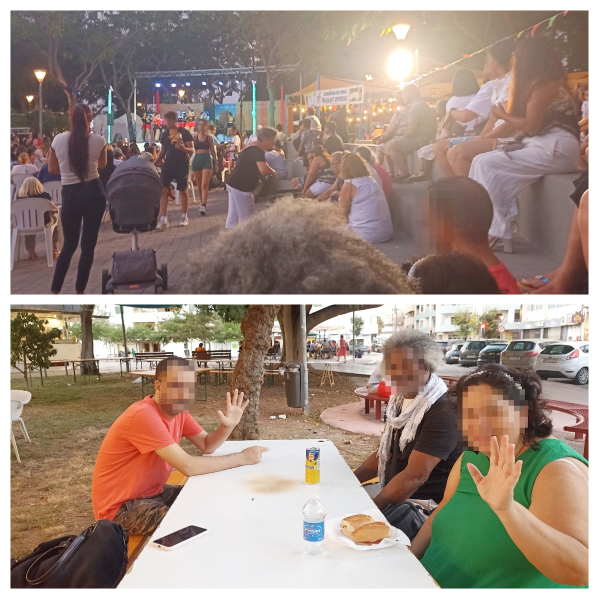 Fa uns dies vàrem acordar amb les persones residents sortir dels pisos cap a les 20:30 per anar al Parc de la Pau, on se celebraven les festes del barri d’Es Clot.