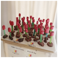 por este el motivo, hemos hecho unas rosas con material reciclado y una base de barro;