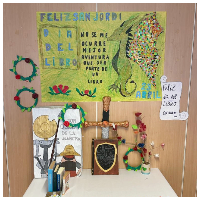 Mientras tanto en el centro de día se lee en voz alta un relato relacionado con el día de Sant Jordi y se recuerda la importancia de la lectura.