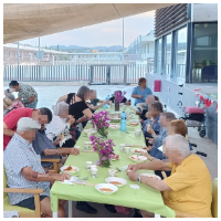 Coincidiendo con la retirada de las mascarillas, celebramos en Sa Serra la primera cena a la “fresca” con una veintena de participantes.