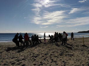 El día comenzó a las 10.30 h con calentamientos y presentaciones, después en grupos se hicieron diferentes pruebas como la cuerda, balón-tiro, lanzamiento de peso y relevos.