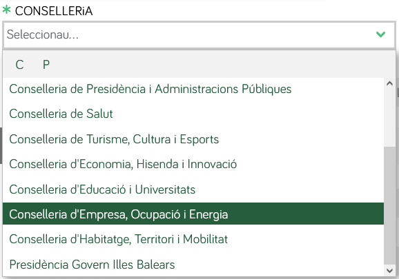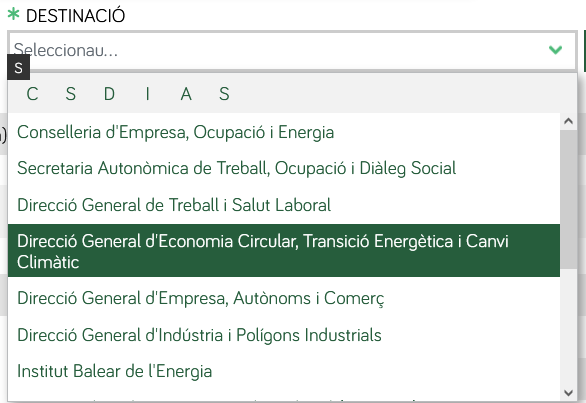 - Si es necessita corregir errades, transcorreguts els 30 dies naturals següents al dia en què es va realitzar el registre del certificat, ja no podran emprar les opcions de correcció d'errors esmentades, i hauran de sol·licitar la correcció mitjançant el tràmit d'instància genèrica, al qual pot accedir fent clic aquí, en el que hauran de triar al camp Conselleria, la Conselleria d'Empresa, Ocupació i Energía i al camp Destinació la Direcció General d'Economia Circular, Transició Energètica i Canvi Climàtic, tal i com es mostra en les següents imatges: