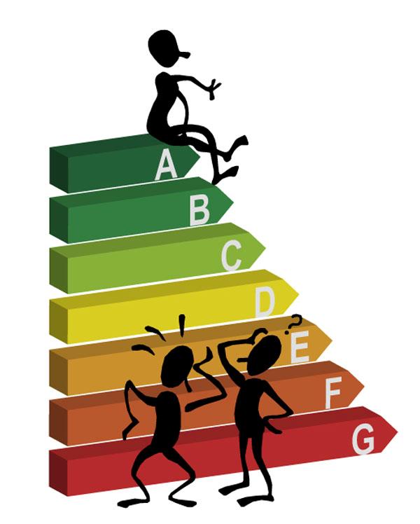 La calificación de eficiencia energética es el resultado del cálculo del consumo de energía necesaria para satisfacer la demanda energética del edificio en condiciones normales de funcionamiento y de ocupación. Clasifica los edificios dentro de una escala de siete letras, donde la letra G corresponde al edificio menos eficiente y la letra A al edificio más eficiente según el consumo de energía y las emisiones de CO2 comparadas con un edificio base de similar tipología y localización.