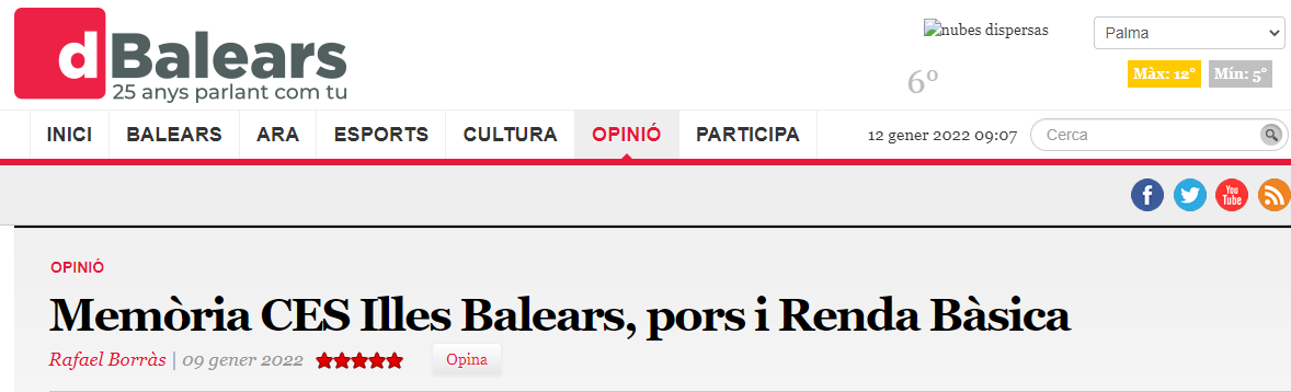 Titular: Memòria CES Illes Balears, pors i Renda Bàsica