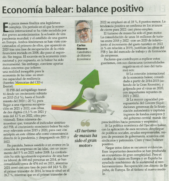 Article d'opinió a la secció Tribuna en el qual Carles Manera menciona les Memòries del CES