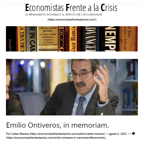 Article del diari Economistas Frente a la Crisis signat per Carles Manera on es menciona que Emilio Ontiveros va assessorar al CES en l'estudi Horizonte 2030: