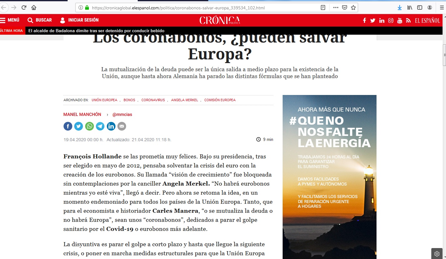cronicaglobal.elespañol.com -- Crónica política (Artículo de opinión de Manuel Chinchón) -- 19.04.2020