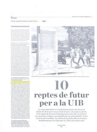 cita.- L'estudi Horitzó 2030, impulsat el 2019 pel Consell Econòmic i Social de les Illes Balears (CES) i la UIB, en l'apartat dedicat a analitzar la situació de l'educació superior -elaborat per Francesca Salvà, jaume Sureda, aina calvo i Miquel F. Oliver- ja s'alertava que la universitat balear és, després de  la rioja, la que ofereix menys estudis de grau de l'Estat.
