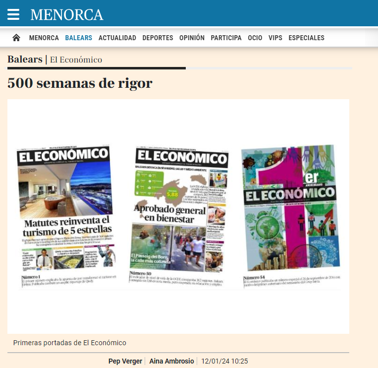 Viernes 12 de enero -- Pep Verger, Aina Ambrosio -- El Económico (Menorca. Es diari, digital)