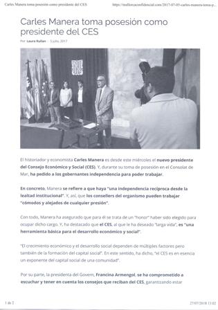 Carles Manera toma posesión como presidente del CES