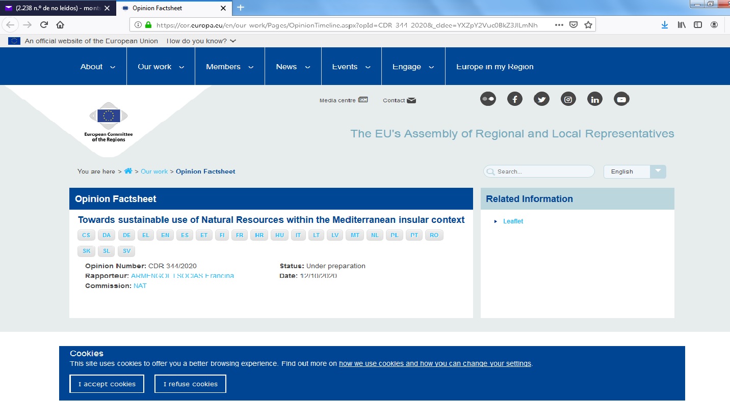 El Govern reclama l’atenció específica de la UE a les illes mediterrànies davant la seva vulnerabilitat socioeconòmica, ambiental i climàtica