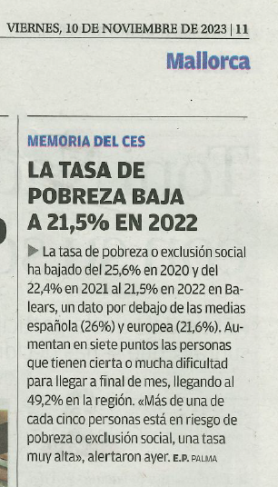 El artículo destaca algunos de los datos más relevantes compartidos en una rueda de prensa al Parlamento de las Islas Baleares, donde se ha hecho la presentación de la Memòria del CES sobre l'economia, el treball i la societat de les Illes Balears 2022