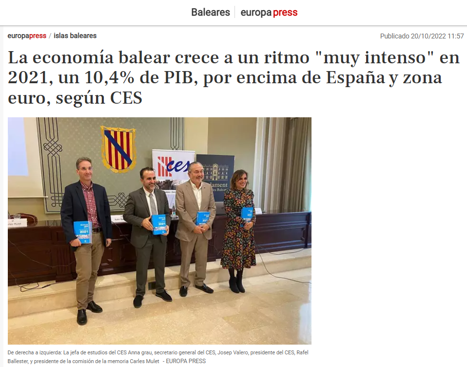 El artículo destaca algunos de los datos que recoge la Memoria del CES que se ha presentado en una rueda de prensa en el Parlamento de las Islas Baleares.