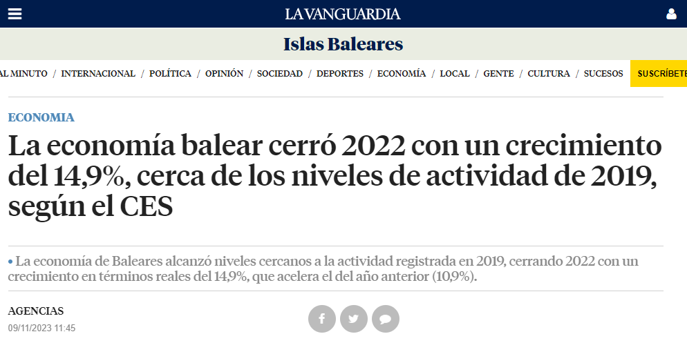 El artículo destaca algunos de los datos más relevantes compartidos en una rueda de prensa al Parlamento de las Islas Baleares, donde se ha hecho la presentación de la Memòria del CES sobre l'economia, el treball i la societat de les Illes Balears 2022