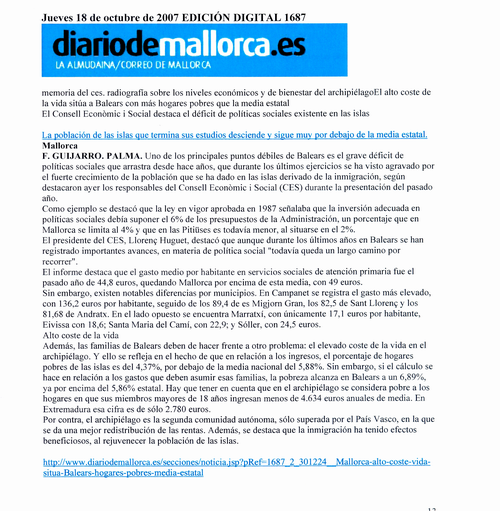 El alto coste de la vida sitúa a Balears con más hogares pobres que la media estatal