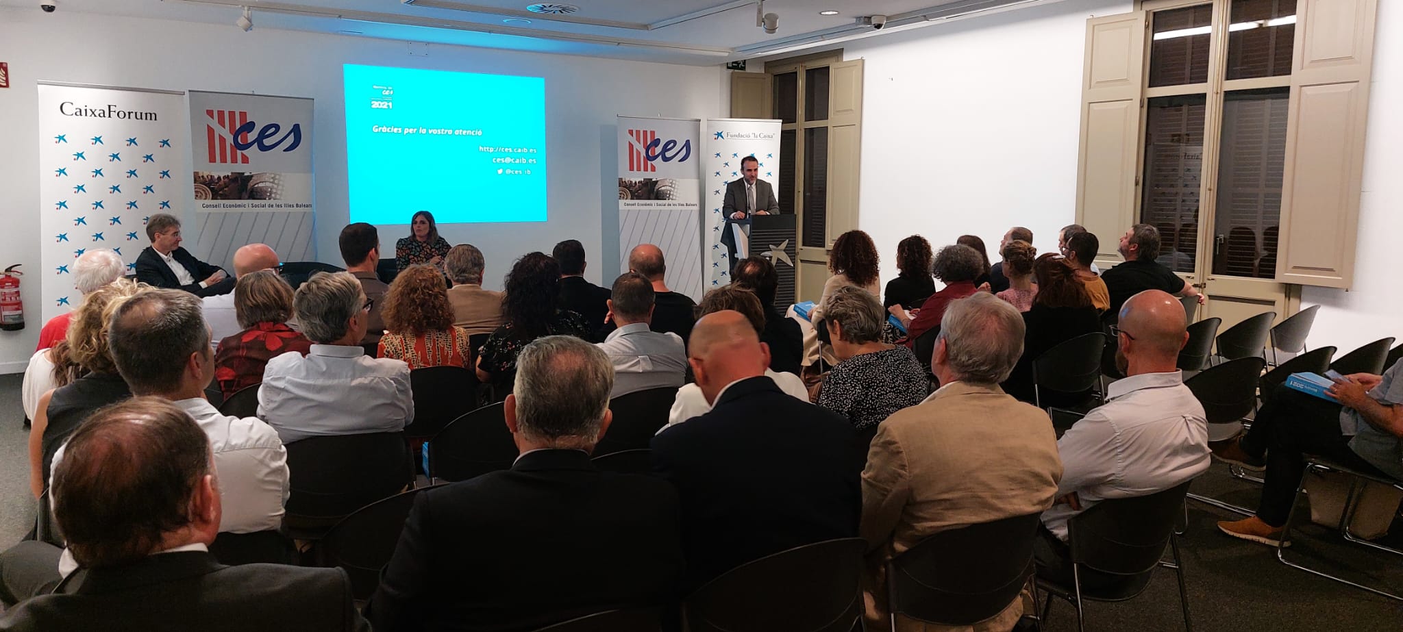 Presentación pública de la Memoria del CES sobre la economía, el trabajo y la sociedad de las Islas Baleares 2021 al Caja Forum de Palma .