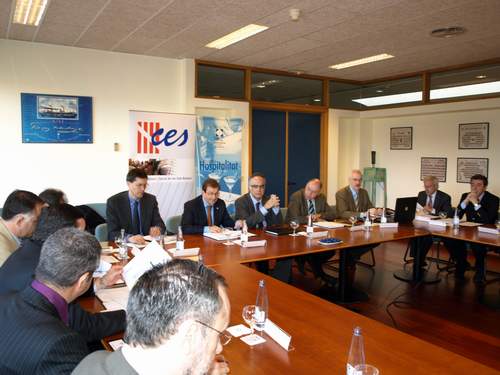 En la mesa principal: el Conseller de Economía y Hacienda, Sr. Carles Manera, los profesores Sr. Francesc Solé Parellada (UPC), Sr. Javier Sánchez-Asín (Univ. Zaragoza) y el Presidente del CES, Sr. Llorenç Huguet