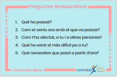 El Decreto de Derechos y Deberes de los Alumnos regula la mediación como una herramienta de resolución pacífica de conflictos en los centros escolares. Fieles a esa idea, desde 2008, Convivèxit ha promocionado la mediación mediante proyectos de innovación pedagógica, seminarios, cursos y encuentros de alumnos mediadores. Sin renunciar a los beneficios evidentes de la mediación, apostamos también por la difusión de las prácticas restaurativas (PR) como filosofía de convivencia complementaria a la mediación por diferentes razones: