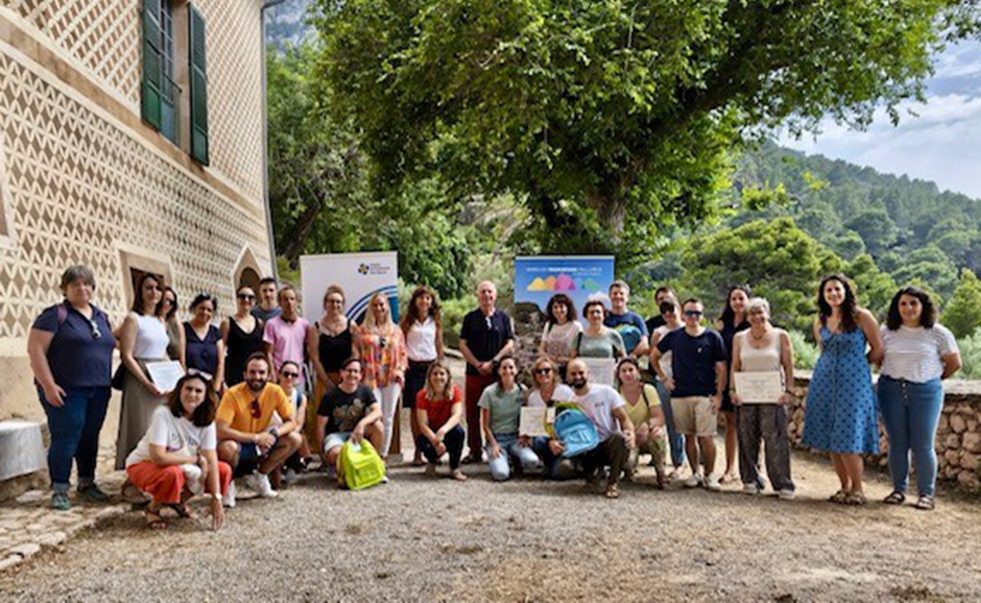 [Unos setenta docentes de colegios e institutos de Mallorca se han reunido en Galatzó para formarse sobre una metodología educativa que, por primera vez, pondrán en práctica en sus centros con el objetivo de cuidar la Serra de Tramuntana.]