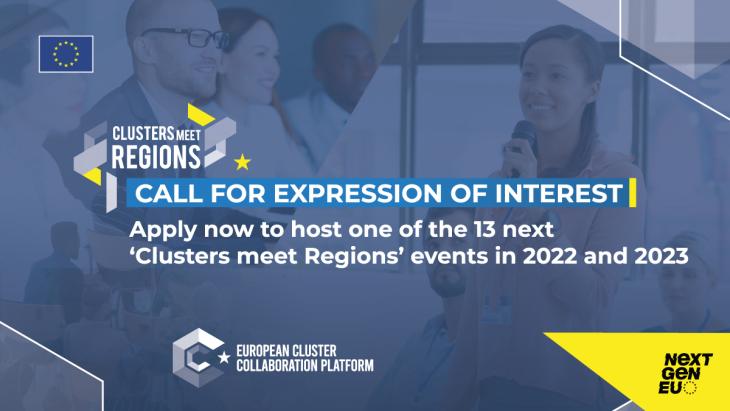 05/07/22 La Plataforma de colaboración clústeres europeos (ECCP) abre el proceso de selección de las autoridades nacionales/ regionales y las organizaciones de clústeres para organizar los próximos talleres «Clusters meet Regiones!» Plazo de solicitud 29 de julio de 2022