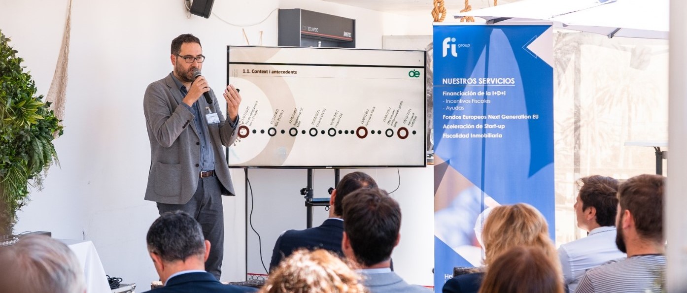 El director de la Oficina de Inversiones Estratégicas, Joan Carrió introdujo el contexto Next Generation EU desde el punto de vista de las instituciones y en concreto del Govern de les Illes Balears. En la mesa redonda participaron también José Mañas, CEO de WDNA y presidente de GSBIT, Nacho Lugo, CFO de CAMPER y Javier Vich, vicepresidente de FEHM. Se trataron temas como los Fondos Europeos y la sostenibilidad y digitalización como palancas clave de la industria Balear.