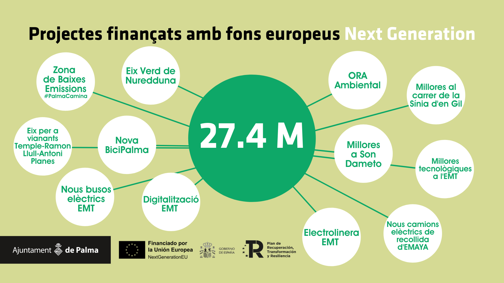 Palma rep 27,4 milions d'euros dels fons europeus Next Generation per a impulsar la mobilitat sostenible