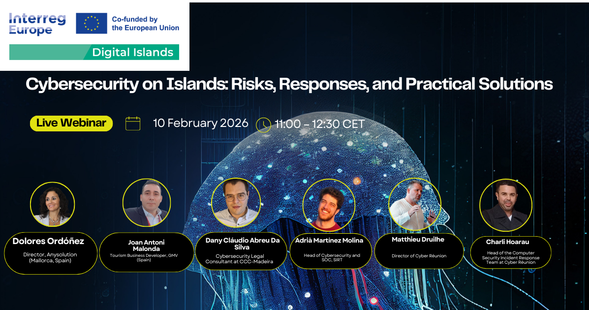 El proyecto europeo Digital Islands inicia su ciclo de webinars con la sesión “Ciberseguridad en islas: riesgos, respuestas y soluciones prácticas”, que tendrá lugar el 10 de febrero, de 11.00 a 12.30 h, en formato online y con motivo del Día de Internet Seguro.