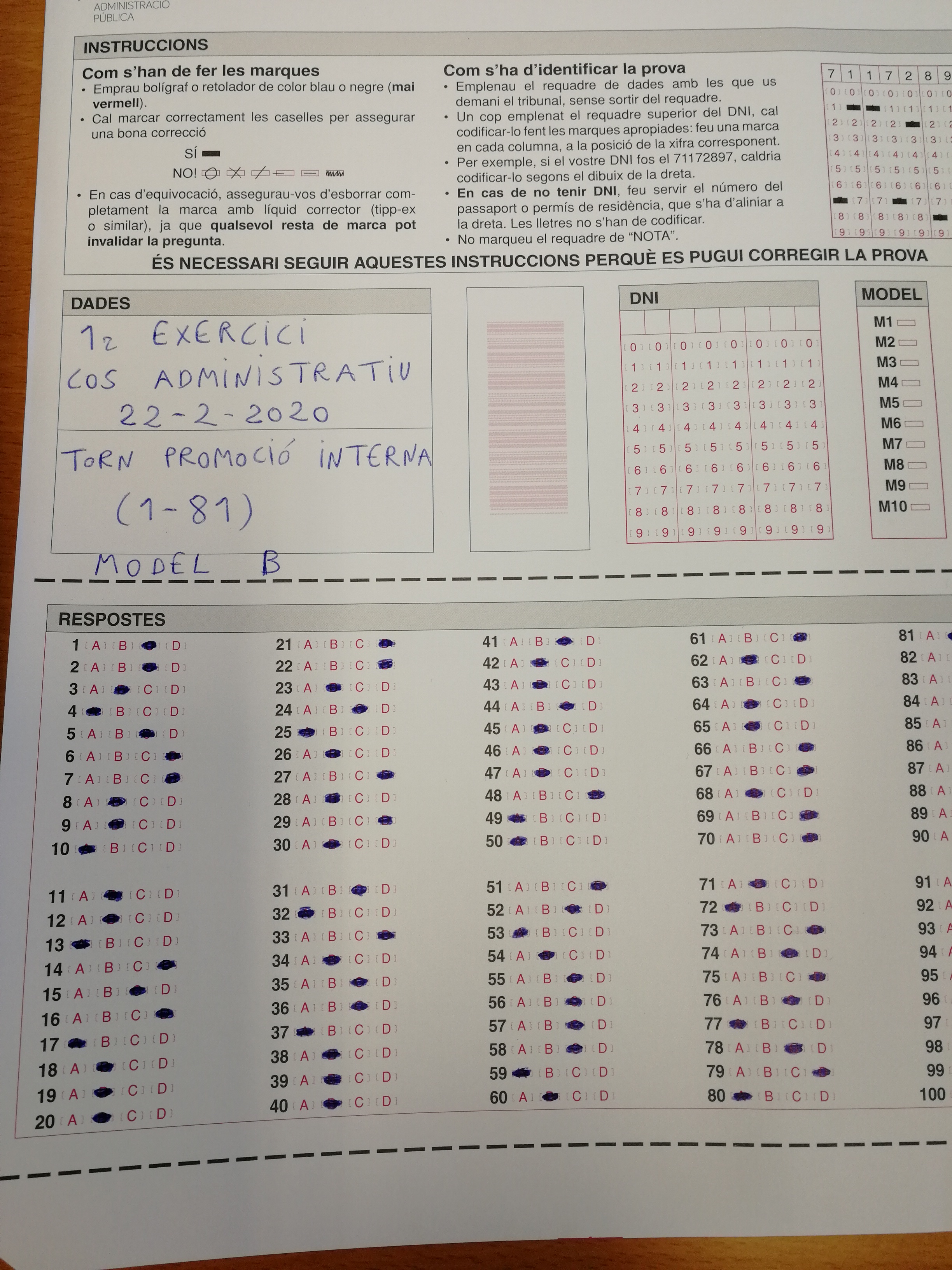 Cuerpo administrativo. Publicación de los cuestionarios del primer ejercicio y de las respuestas.