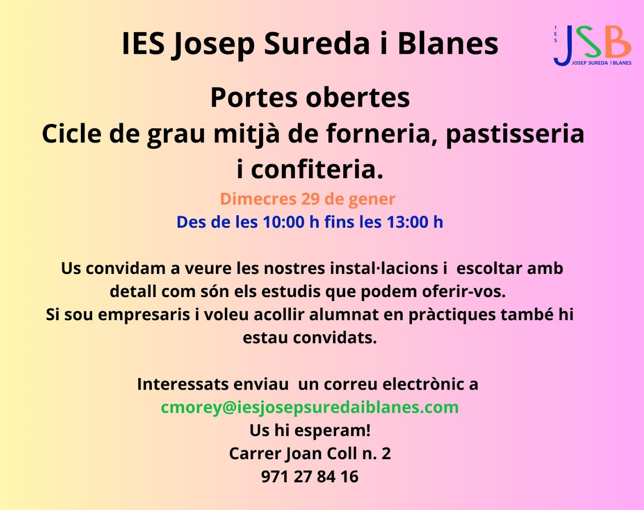 Confirmació assistència: cmorey@iesjosepsuredaiblanes.com o al 971278416