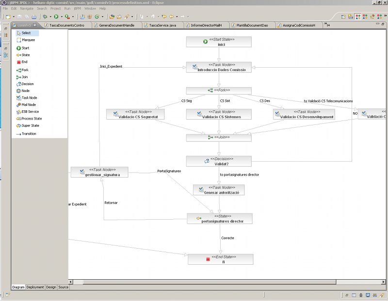 Este módulo se encarga de gestinar la definición y ejecución de los procesos para los diferentes expedientes. La base de este módulo es la librería jBPM.