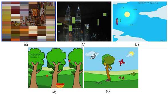 Juegos para entrenar SINA (a) y (b) Acción Reacción, (c) y (d) Movimiento vertical y horizontal y (e) Acción arrastre |