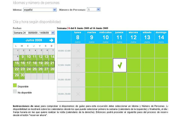 Una vez instalado el portal proporciona acceso a diferentes procesos de reserva, con una web dividida en dos secciones principales: el Portal de Turistas y el Portal para Agencias. El primero permitirá al turista contratar, sin necesidad intermediarios, a un guía profesional con el que visitar los principales núcleos urbanos del destino. Esta modalidad de reserva es especialmente novedosa, ya que el sistema incorporará clientes al grupo hasta el momento del inicio de la excursión, permitiendo las reservas de última hora. El sistema asignará automáticamente un guía para cada reserva utilizando un algoritmo que maximiza el beneficio y empleo de los guías que ofrezcan sus servicios a través del portal. El Portal para Agencias agilizará las reservas y transacciones con agencias de viaje y touroperadores; sirviendo asimismo como catálogo de las excursiones del proveedor. Con el Portal para Agencias no sólo se mejora el servicio a los clientes sino que podrán contratar guías todas aquellas agencias que accedan a esta web desde cualquier lugar del mundo. En este caso el guía atenderá a un grupo cerrado que le proporcione el cliente: agencia o touroperador. Nuevamente es el sistema el que asigna automáticamente el guía para cada reserva, aunque también dará la posibilidad de seleccionarlo manualmente en previsión de que el cliente pudiera tener interés en un perfil concreto.