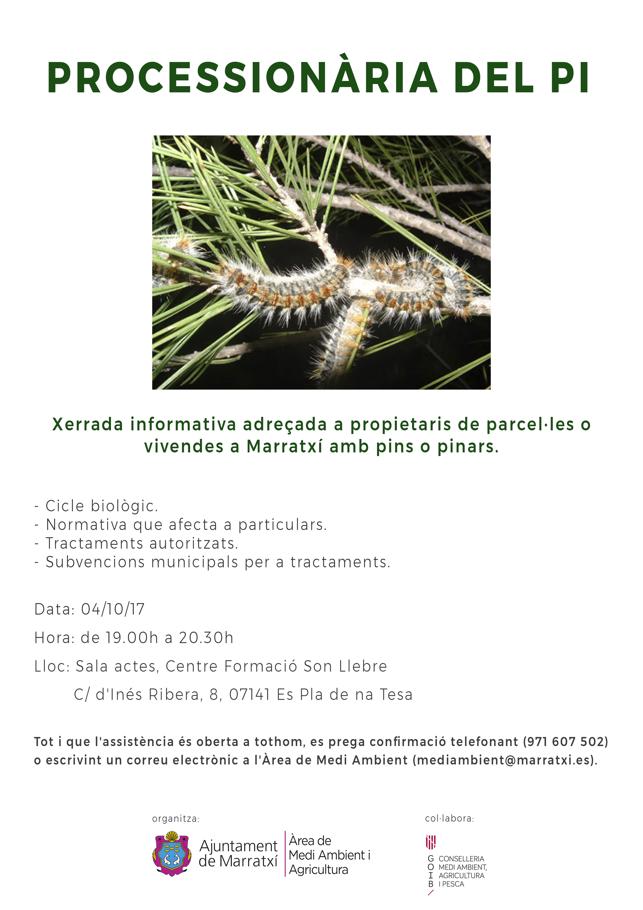- Programa i invitació a la jornada explicativa de les possibles actuacions per al control de l'eruga barrinadora (Paysandisia archon) del garballó(Chamerops humilis) a Balears.