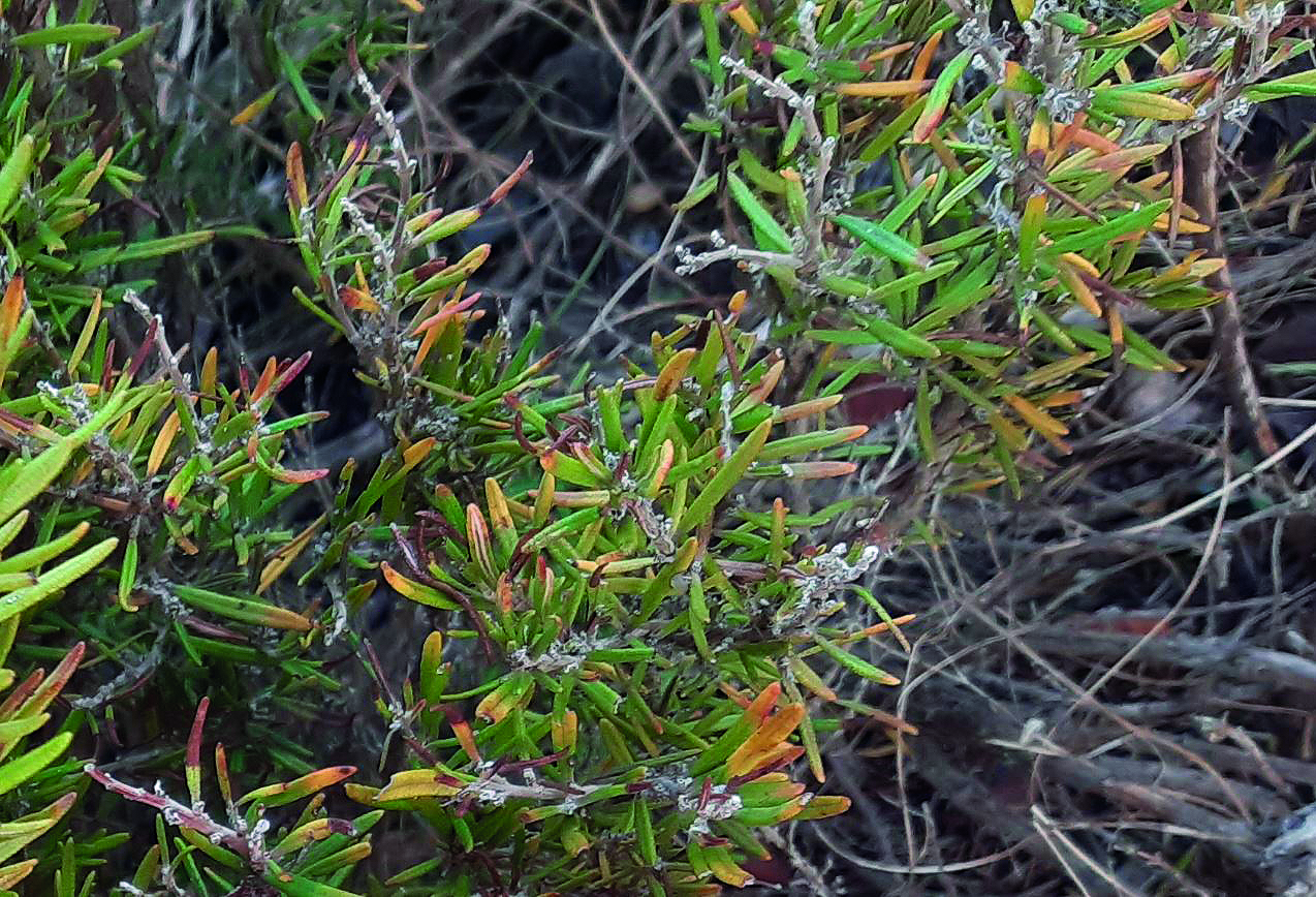 | Rhamnus alaternus afectat per X. fastidiosa. Fotografia: Jose Fidel Garzón. | Rosmarinus officinalis afectat per Xylella fastidiosa.Fotografia: Carlos Daza. |