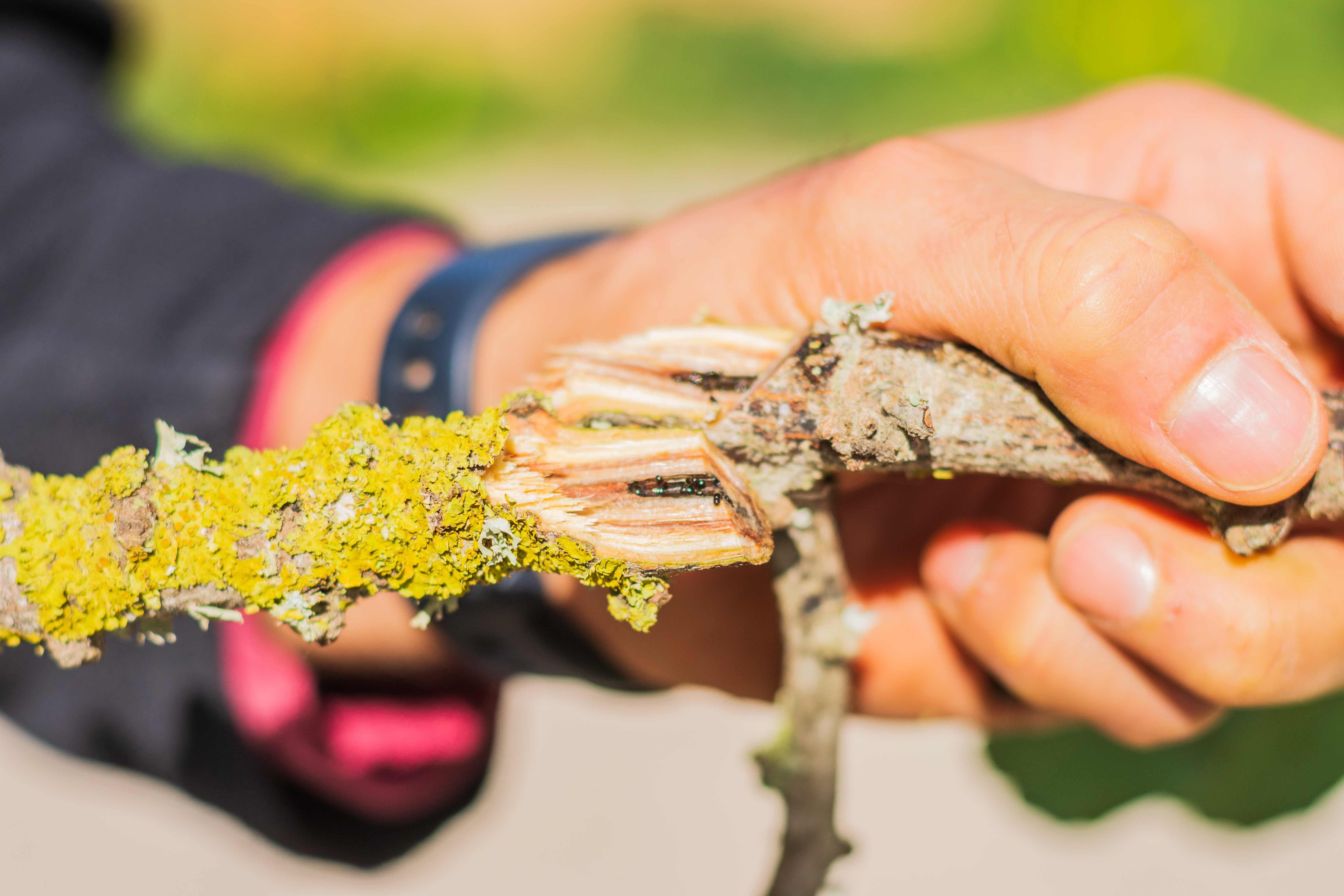 | Branca amb galeria entapissada per fongsi larves de XylosandrusFotografia: Camparini i Leza |