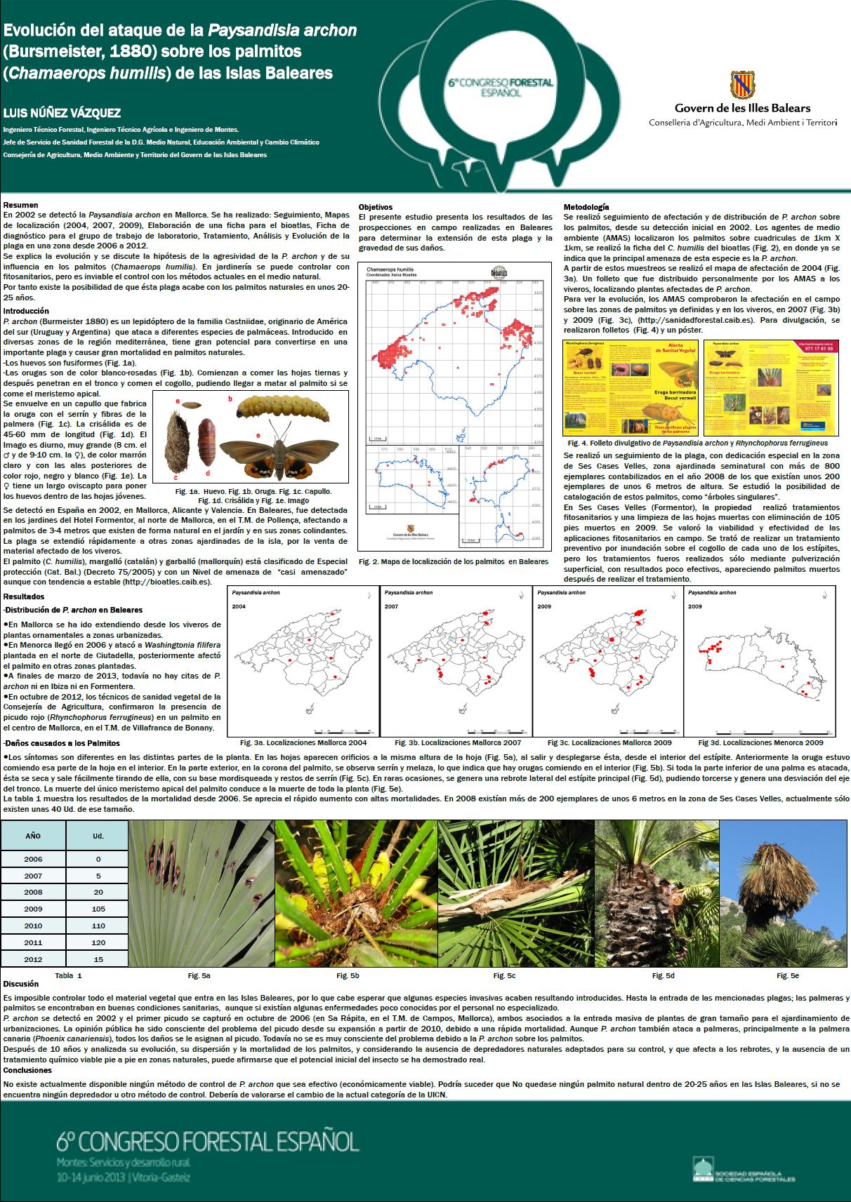 Evolución del ataque de la Paysandisia archon (Bursmeister, 1880) sobre los palmitos (Chamaerops humilis) de las Islas Baleares (Póster)