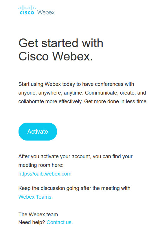 Para poder llevar a cabo una videoconferencia Webex, es necesario que el organizador de la reunión esté dado de alta en el sistema, aunque no és necesario que el resto de participantes lo esté.