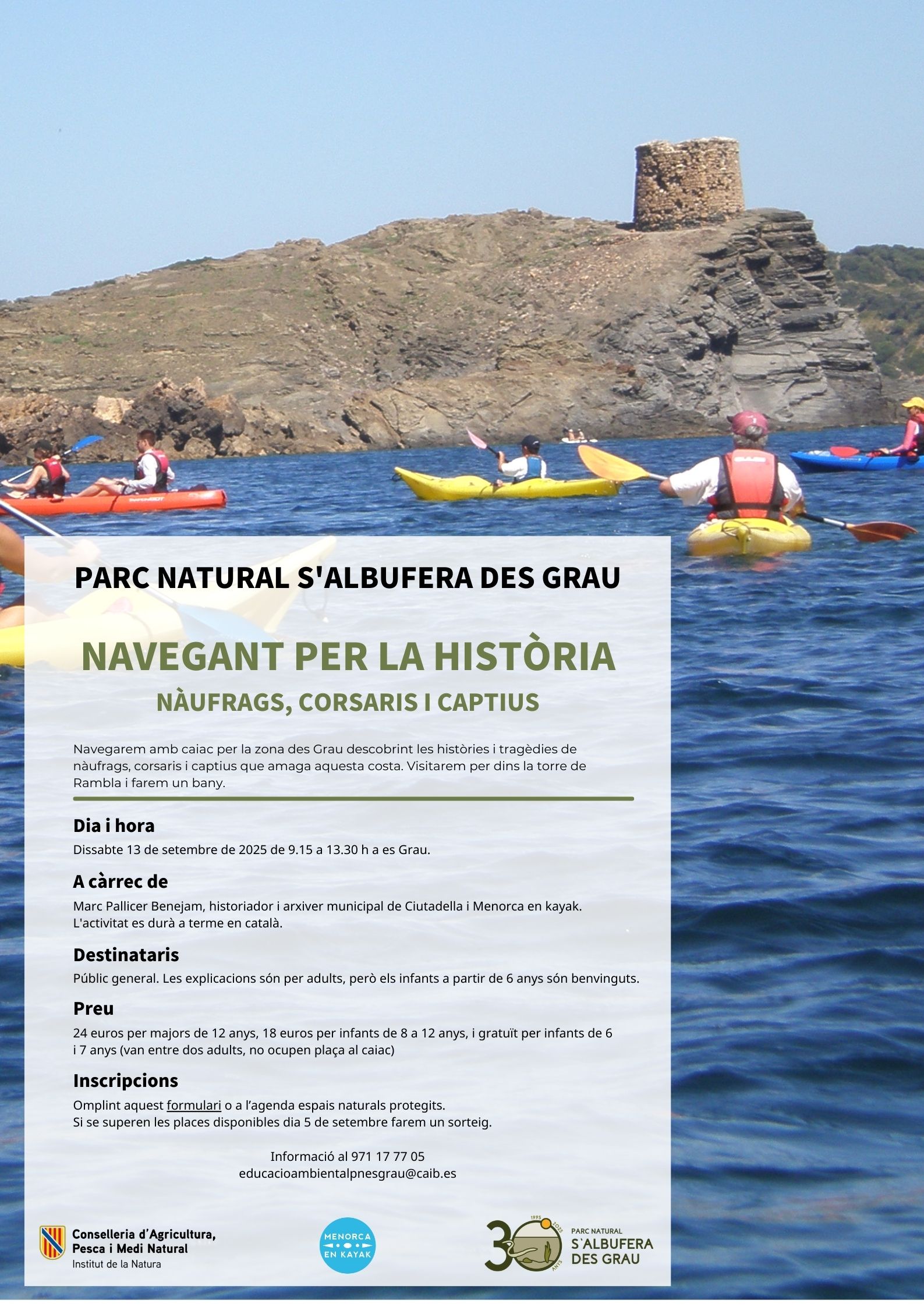 A CÀRREC DE: Marc Pallicer Benejam, historiador i arxiver municipal de Ciutadella i Menorca en kayak. L'activitat es durà a terme en català.