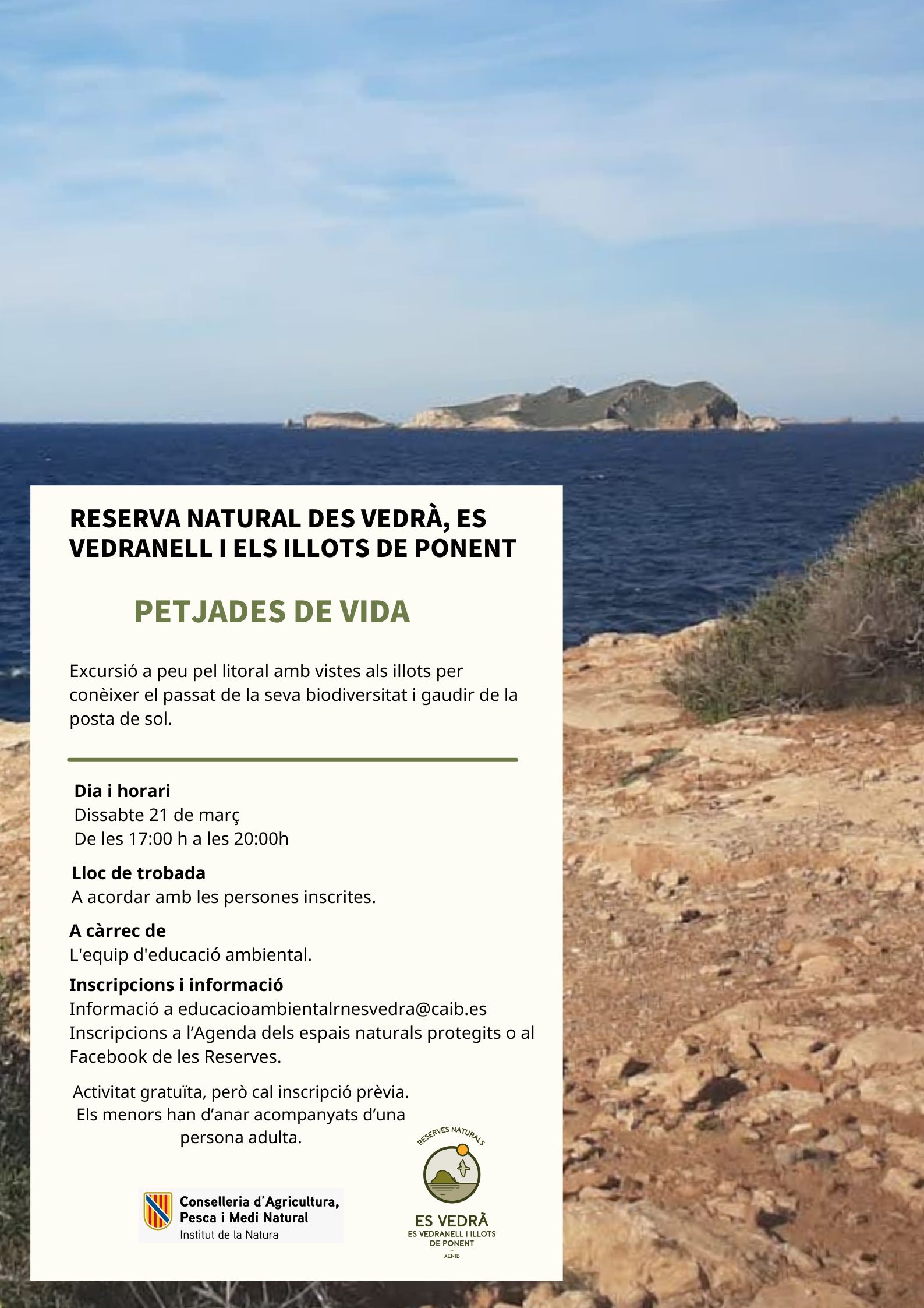 DESCRIPCIÓ: Excursió a peu pel litoral amb vistes als illots per conèixer el passat de la seva biodiversitat i gaudir de la posta de sol.