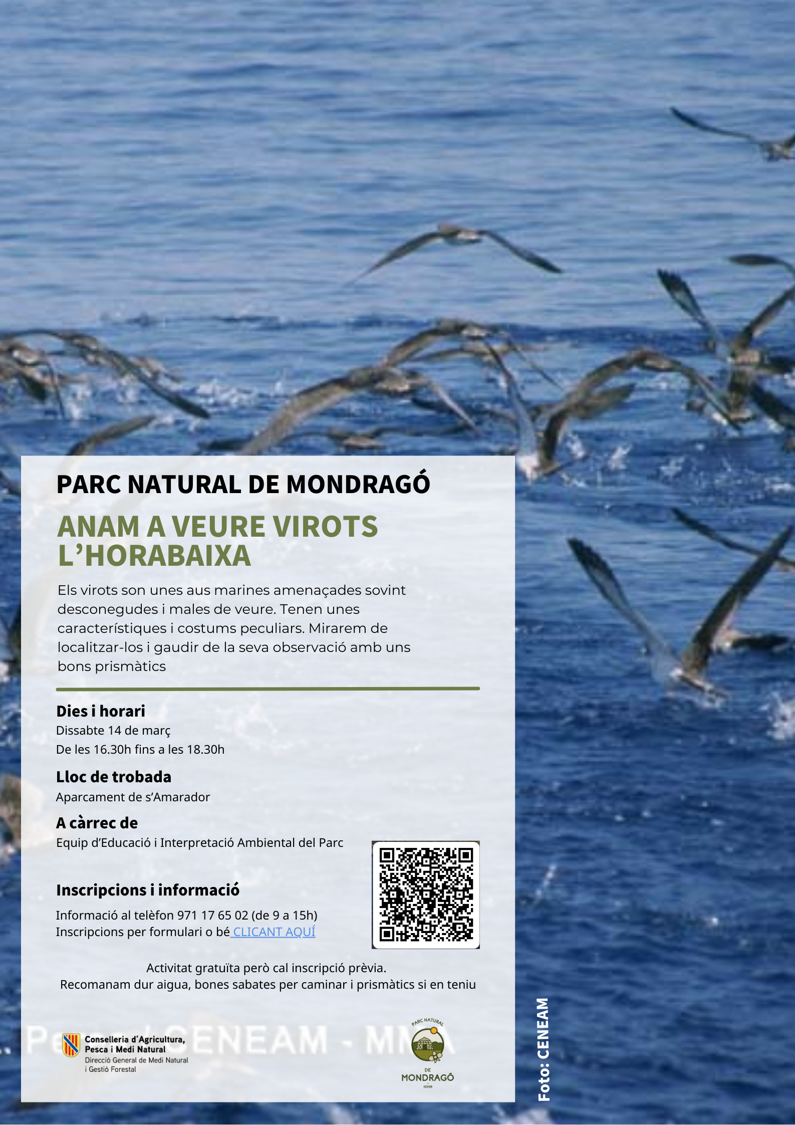 CONTACTO: Para cualquier duda llamar al 971 17 65 02 (Centro de Información del Parque) de 9 a 15h