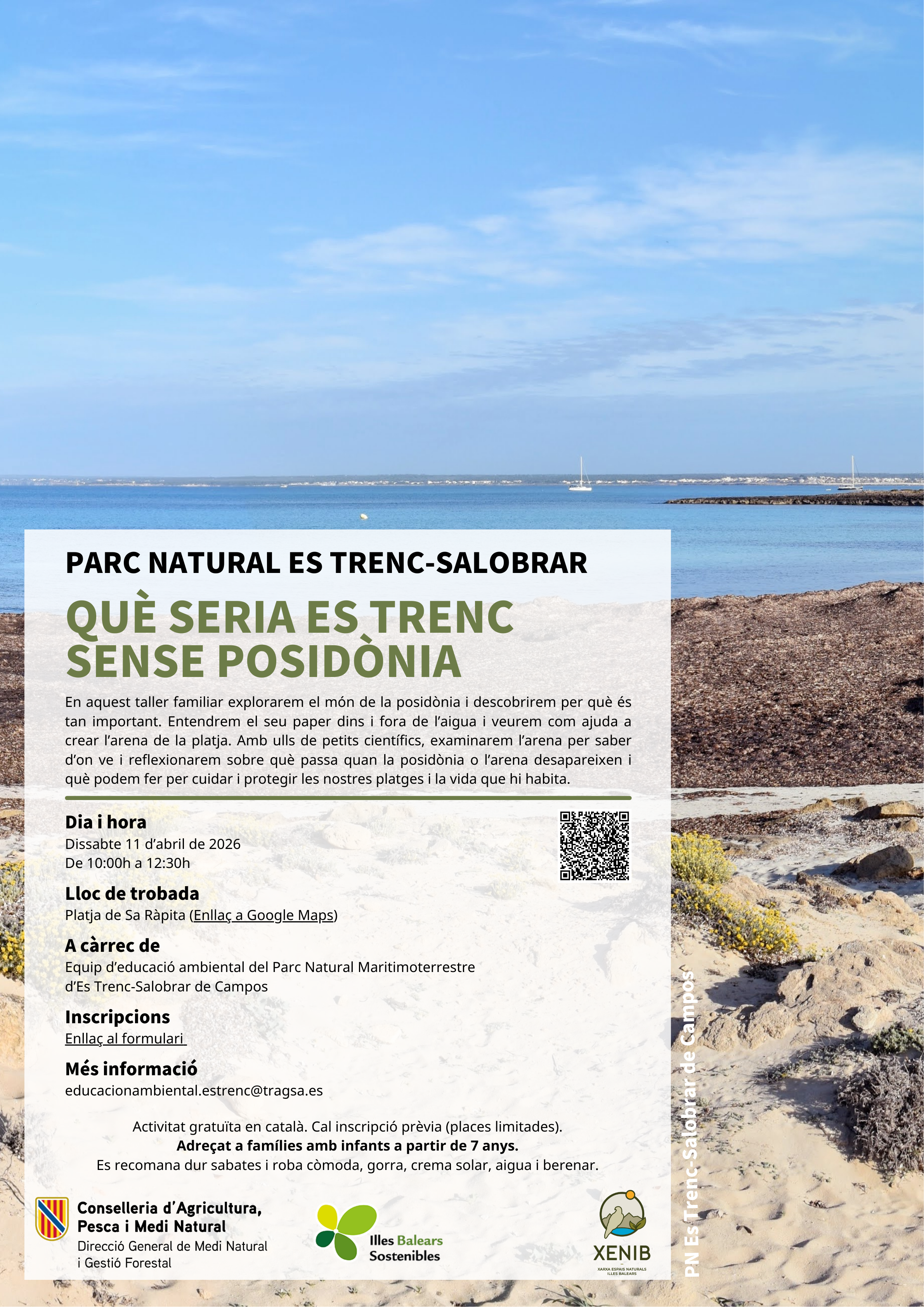 INFORMACIÓN: educacionambiental.estrenc@tragsa.es/ Tel.: 610 55 46 87 (Marta) / 671 96 00 07 (Dani)Para realizar la inscripción hay que rellenar el formulario adjunto