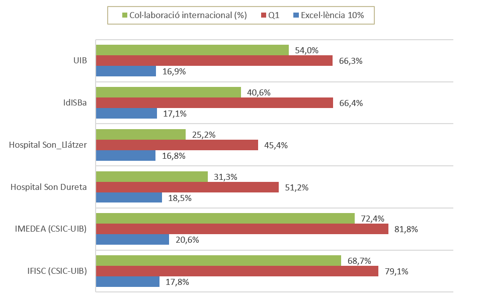 Principals institucions productores científiques de les Illes Balears (2012-2021)