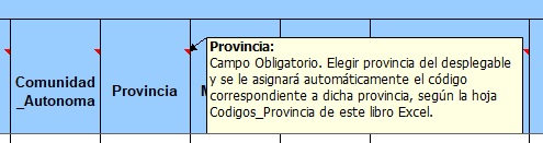 - La plantilla disposa de comentaris d'ajuda a les capçaleres de les columnes, els quals es mostren al possar el cursor sobre la pròpia capçalera.
