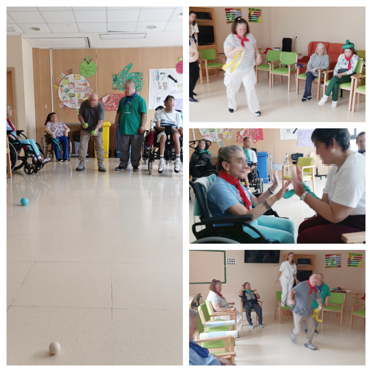 A continuació els hem dividit per grups, a cada membre dels grups els hi hem donat un color...hem fet diferents jocs com per exemple: joc de les mamballetes que consistia en fer mamballetes acompanyades amb una cançó, el segon joc era ‘’pajarito inglés’, el joc del mocador i finalment la petanca.