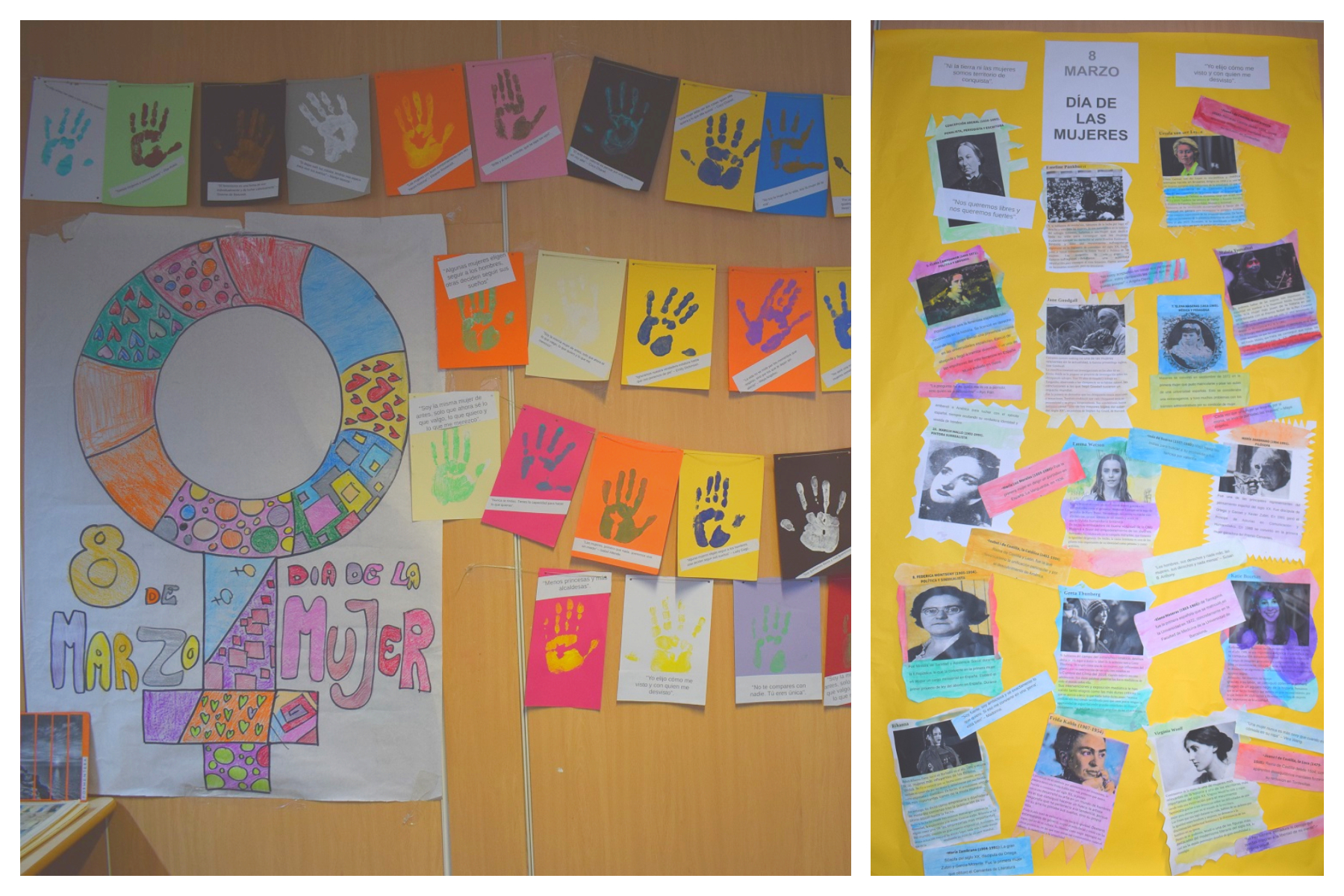 Es prepara un gran mural amb fotos i frases de dones celebres que acoloreixen.