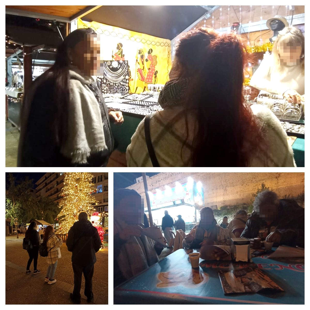 No encontramos sitio para poder escucharlo ya que estaba lleno de gente, así que continuamos caminando hacia el puerto disfrutando de toda la instalación de luces que hay por las calles.